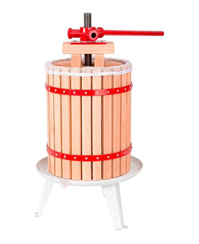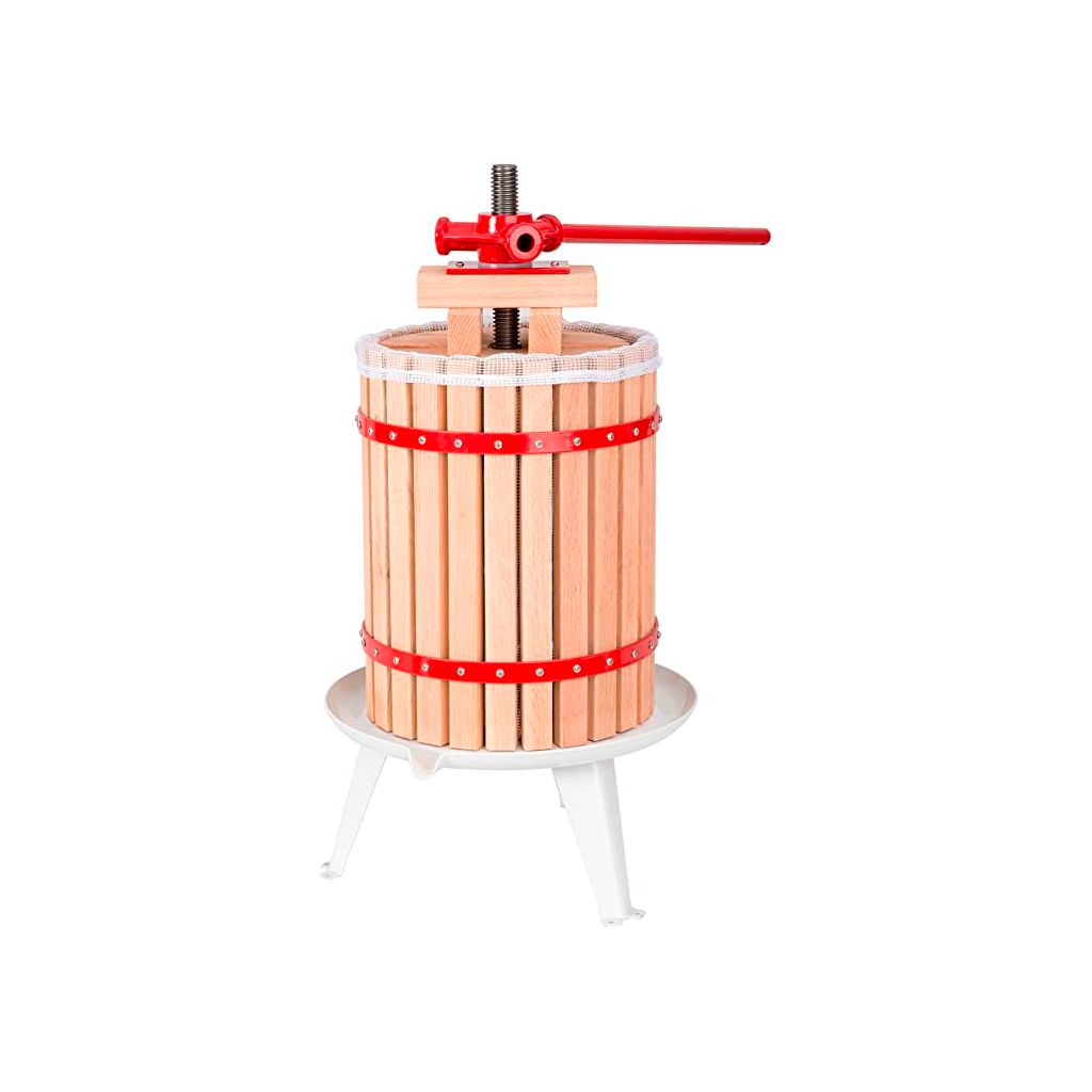 Transformer les fruits de votre verger en jus de fruit de façon traditionnelle. Ce pressoir convient aussi bien aux petits fruits comme le raisin qu'aux gros fruits comme les pommes, poires, et agrumes. Son aspect esthétique en fera aussi une jolie décoration.